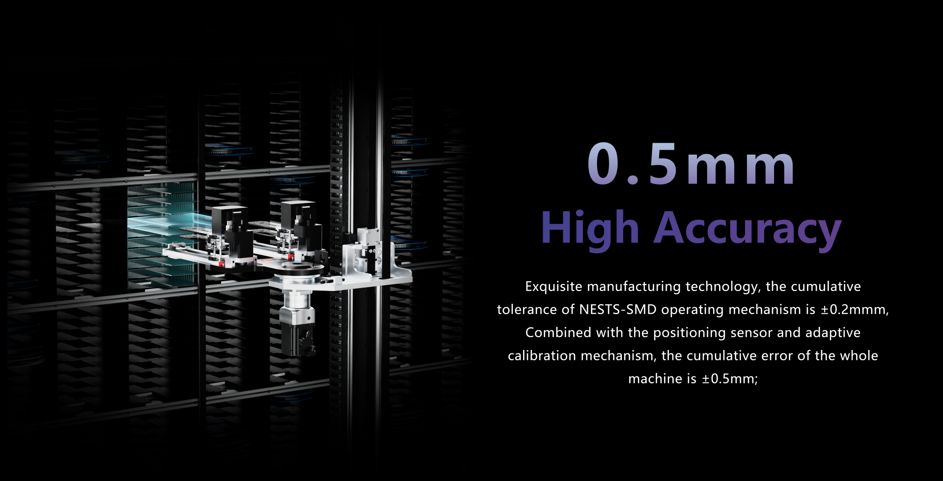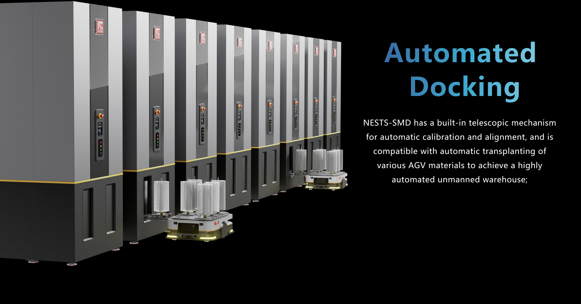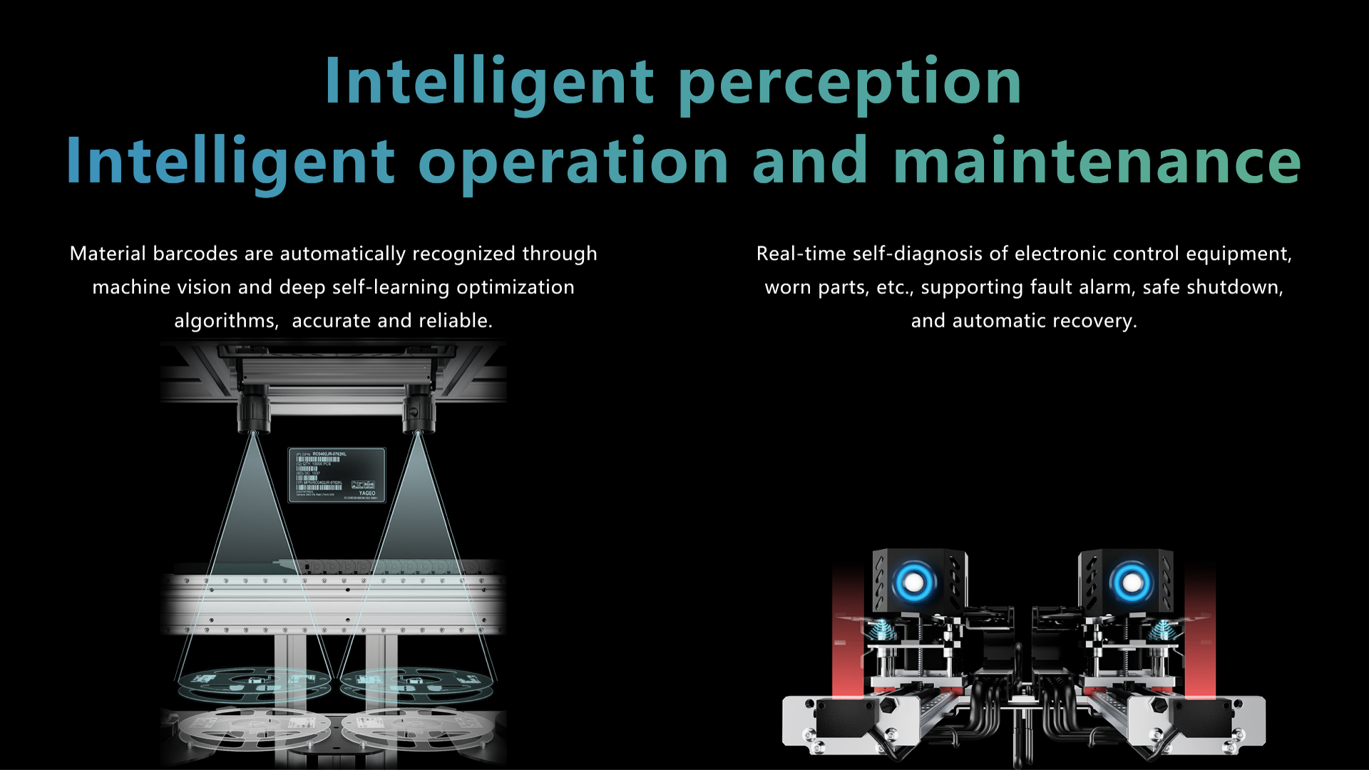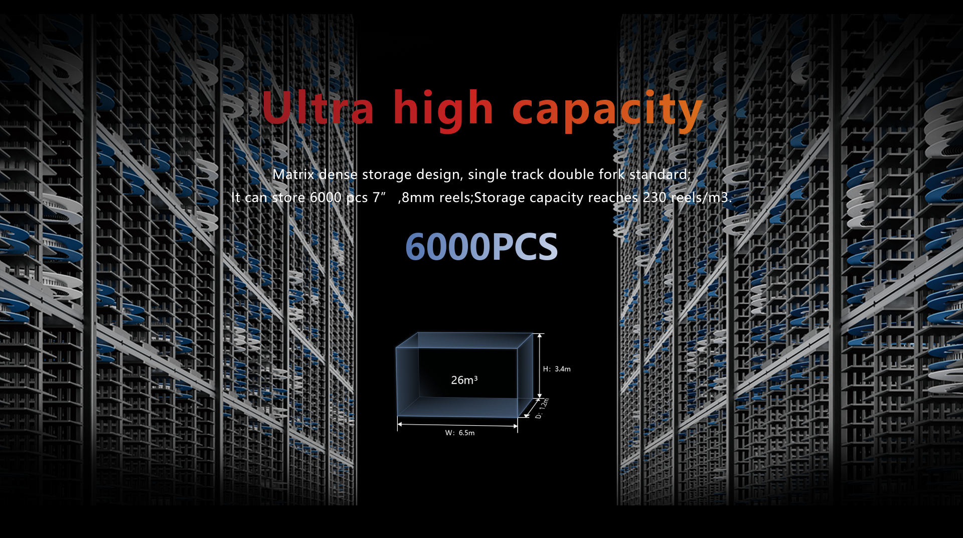 automatic palletizing, automatic docking, automatic buffering, buffer capacity: 160 reels (7" 8mm reel)