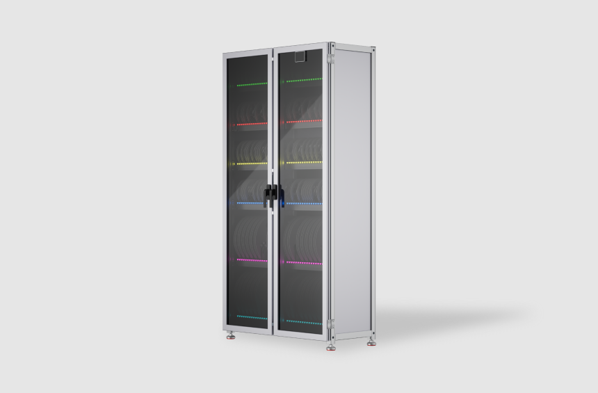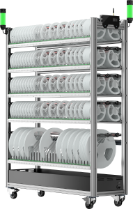 产品全面支持感应式,非感应式。兼顾交互体验,共分为A型、B型、C型三种型号可选,共四门,温度1-10%可调,支持7寸与13寸料盘,最大可存储320个库位,可定制。
