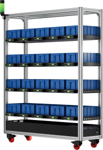 京腾智能基于ARiS系统的智能料架、智能移动料车、智能装配站,全面整合了PTL亮灯引导、光电检测、RFID身份识别追溯、UWB室内定位等功能技术,面向生产制造、商业流通等领域,在柔性制造物料管理、通用仓库物资分拣等业务场景,实现全方位的人机料智能化协同作业。