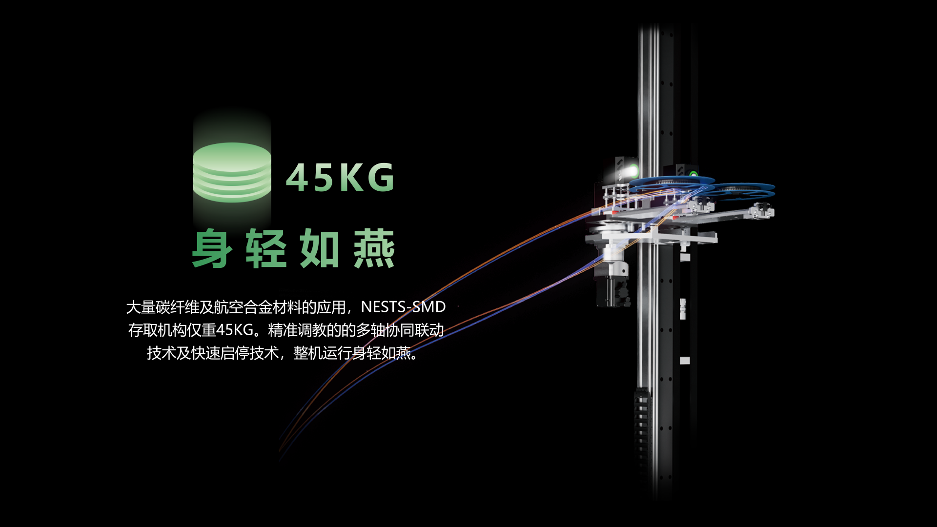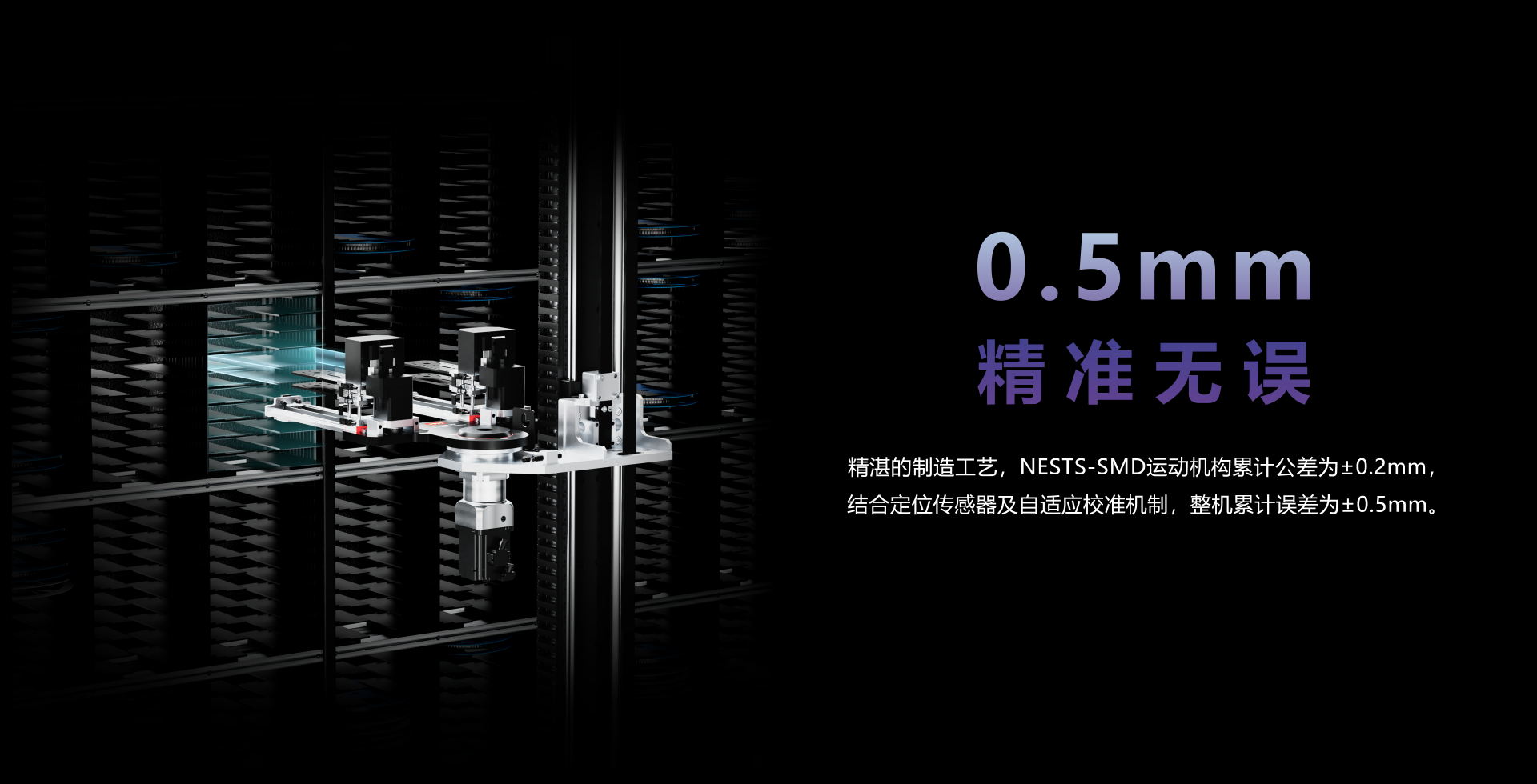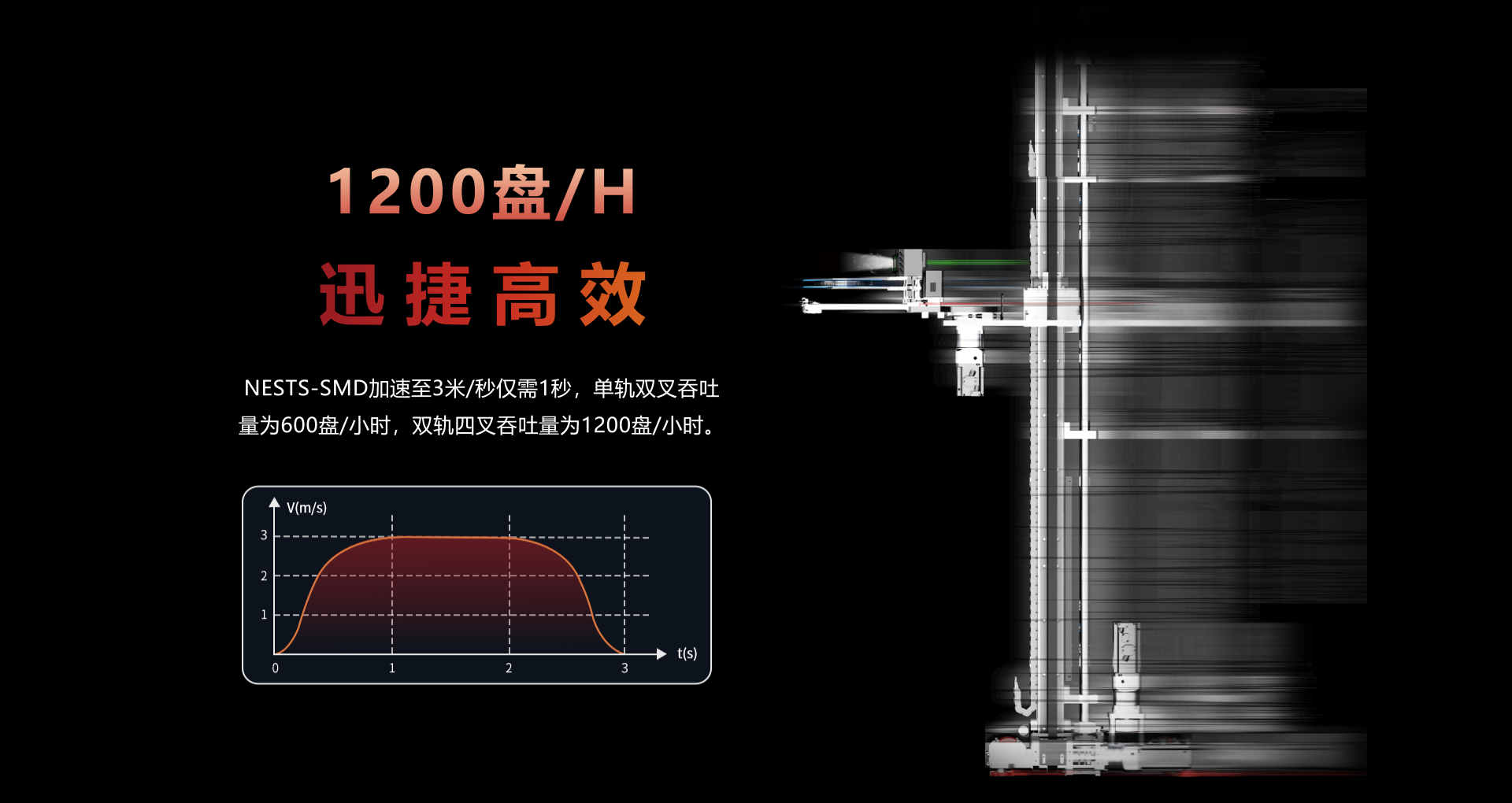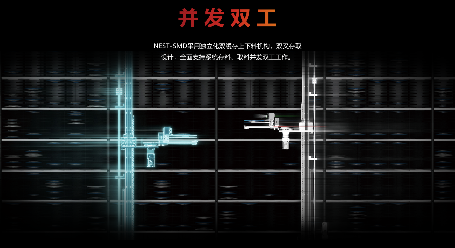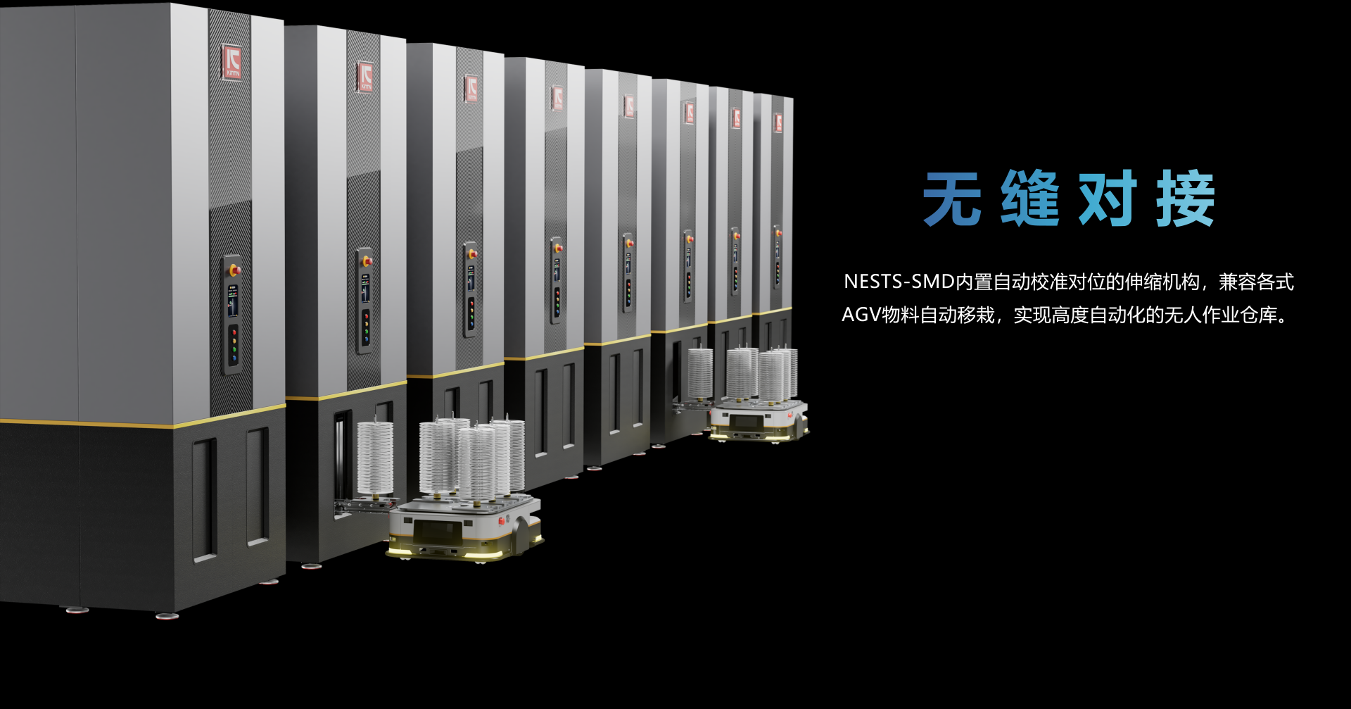 自动码垛,自动对接,自动缓存。缓存器容量:160盘(7"8mm料盘)